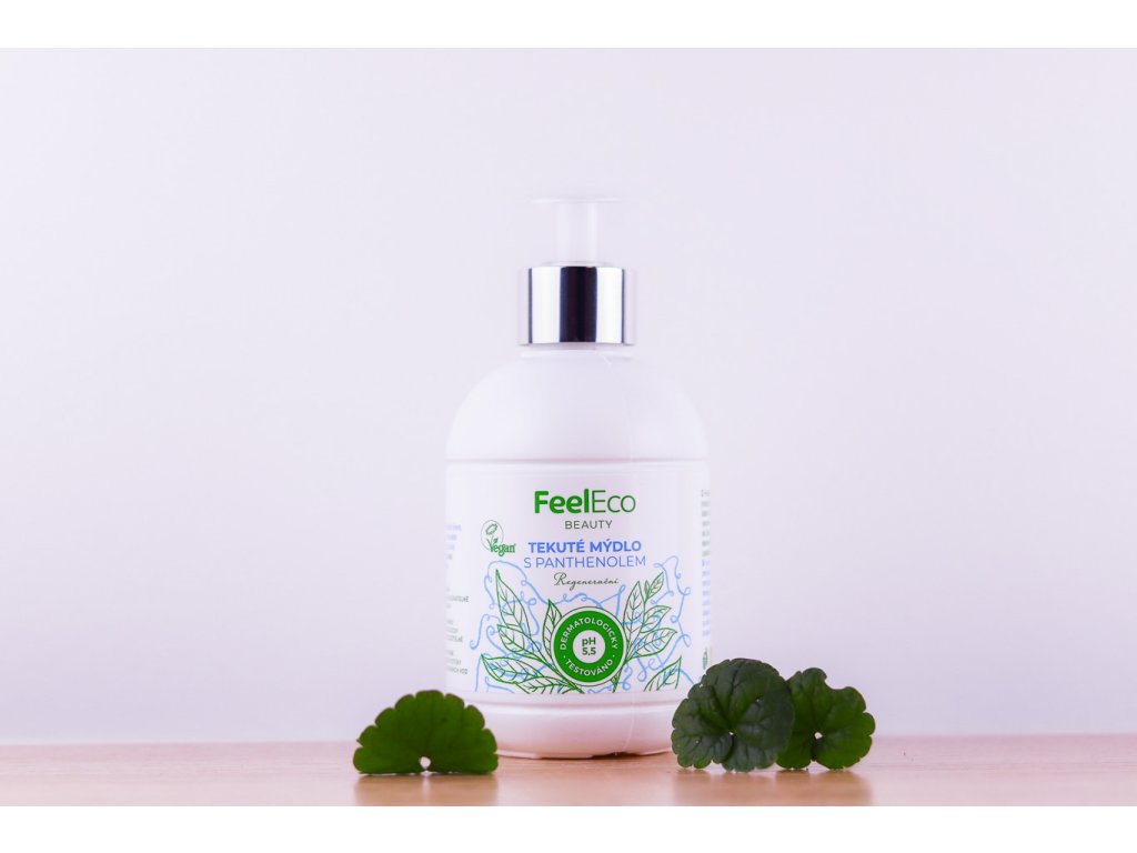 FeelEco Tekuté mýdlo s panthenolem 300 ml čistí pokožku rukou bez podráždění. Obsahuje přírodní výtažky, které hydratují a zjemňují pokožku. Vhodné pro každodenní použití celé rodiny.